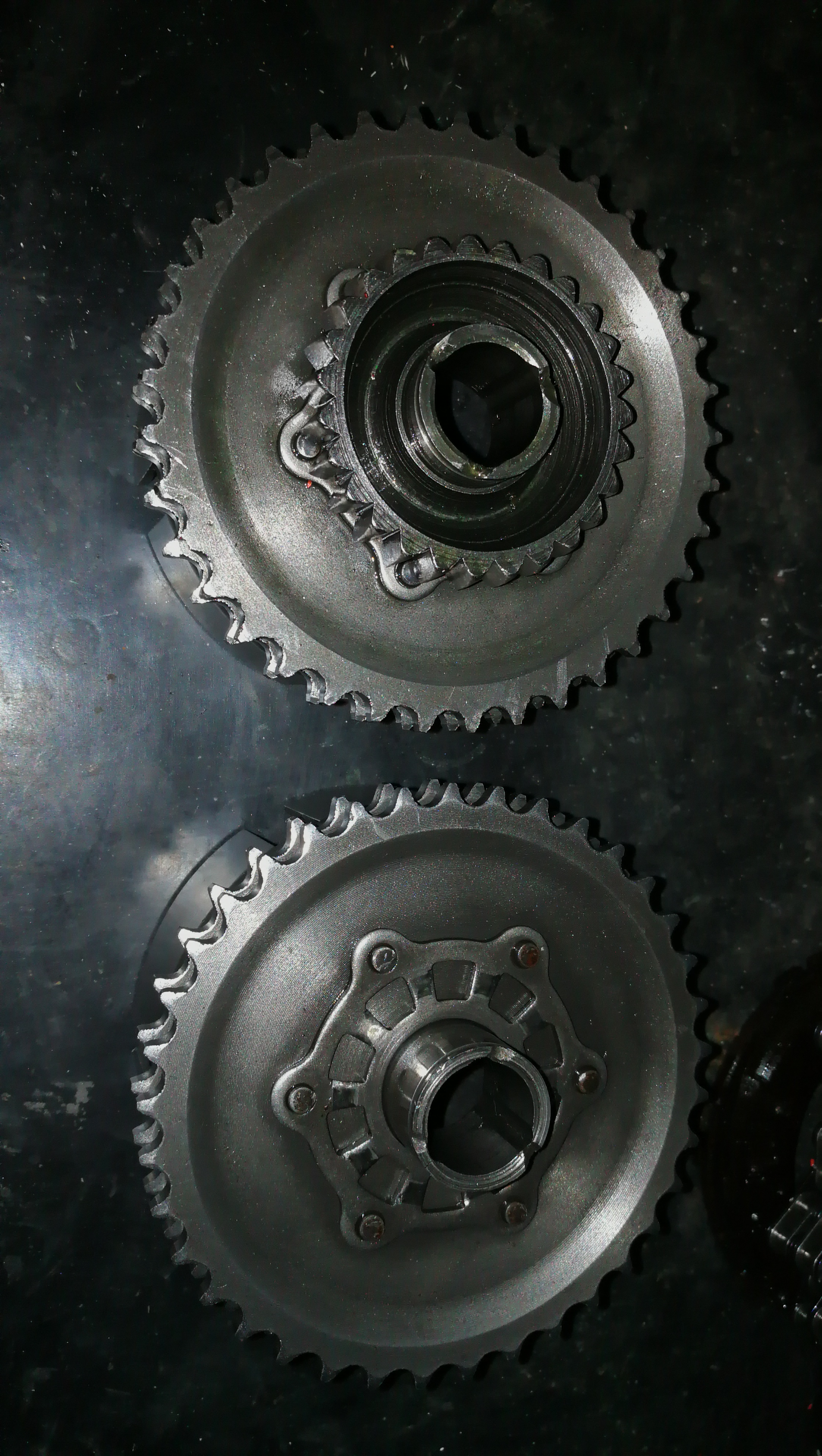 To druhý kolo má zase olítaný zuby ze strany - nebyly slícovaný obě kola primárního pohonu, tohle velký buď mělo pod sebou moc podložek, nebo nebyla ojnice v podélné ose karterů (na středu).