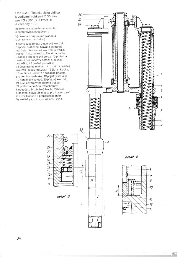 Ahojte, koupil jsem etz 150 a už při koupi na ní byli takové uskákané tlumiče (předchozí majitel říkal, že je tam nejspíš málo oleje, ale že je repasoval, ale byl to jouda.. ) nicméně jinak byla ve velmi dobrém stavu a pár km od výbrusu , tak jsem jí s těmito menšími neduhami vzal. Rozebral jsem teda tlumiče, pružiny byly prý nové, což i vypadaly, koupil jsem sadu na repas a vyměnil všechny vnitřní elementy včetně gufer. Do té chromované trubky jsem dal podle návodu v pořadí dorazová podložka, segerovka, kuželová pružina, druhá podložka ( tady se v příručce píše něco o ventilovém kotouči a z nákresu to není úplně jasné, usoudil jsem, že to bude ta druhá podložka), škrtící vložka a O kroužek. Oleje jsem tam dal 250 mll do každého tlumiče přesně. Pístní kroužky byly lehce větší a nechtěly se tam vlez, tak jsem je musel cca o 3mm zkrátit (i tak byl ale problém je dovnitř dostat a když jsem utahoval desítku matici dole, tak jsem ani nepotřeboval trubkový klíč, protože se to neprotáčelo. Tlumiče jsou ale hrozné uskákané, respektive na asfaltu to není moc poznat ale jak vjedu na polňačku nebo panelovou tak katastrofa, mlátí to jakoby o horní doraz, na spodní doraz mi tlumiče nikdy nešly. Pružiny unavené asi taky nebudou, protože jsem tam horko těžko dostával tu horní matici, pružiny prečnívaly tak o 7 cm.