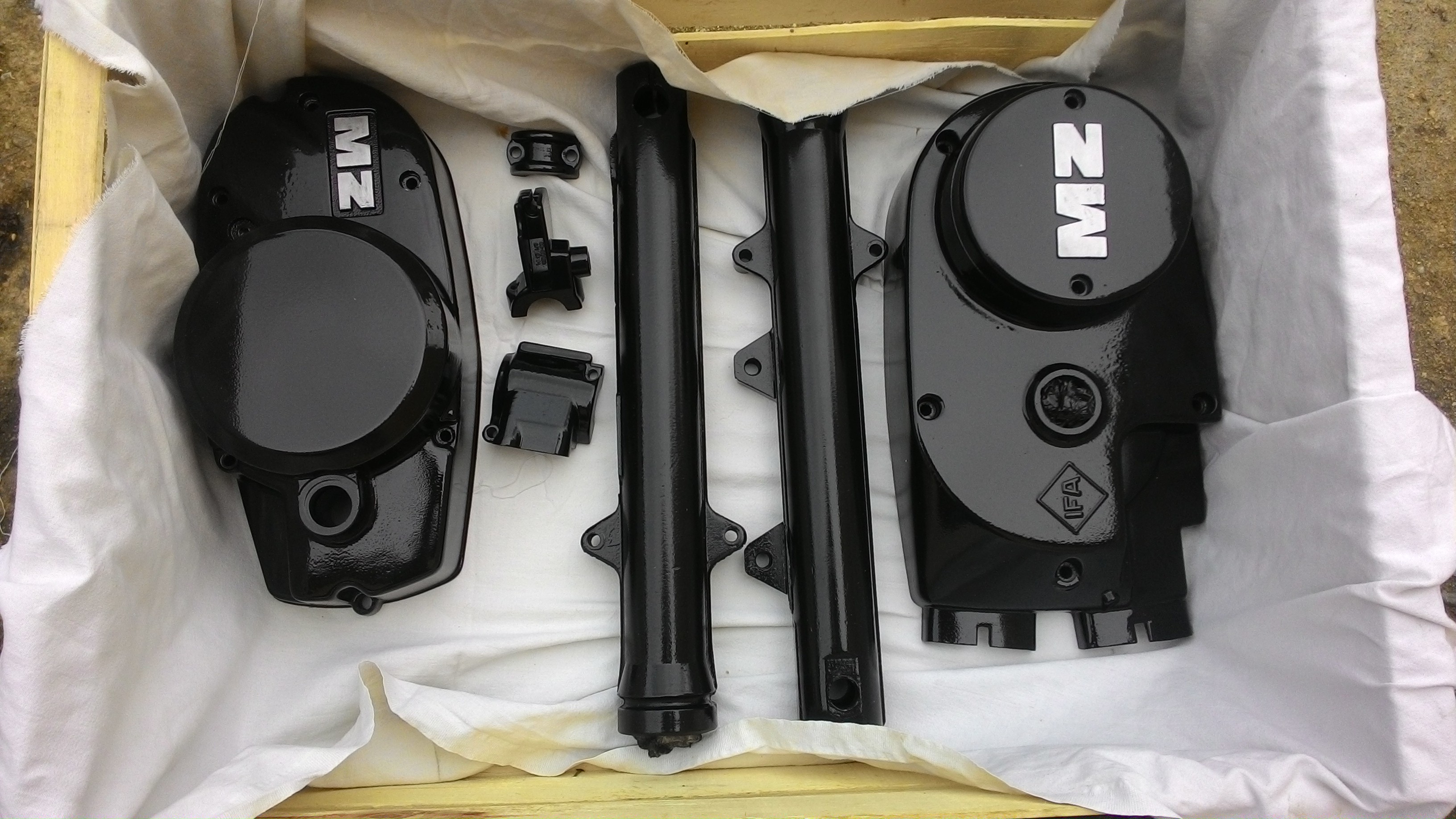 Jak jsi lakoval ty víka motoru? Sám ? Ten nápis MZ jsi nějak přelepil, nebo jsi ho pak pilníkem "očistil" ? Jakou barvu jsi použil a dala by se použít pro brzd.třmen? Nutno ji vypalovat (jako např.barvu na výfuky) ?