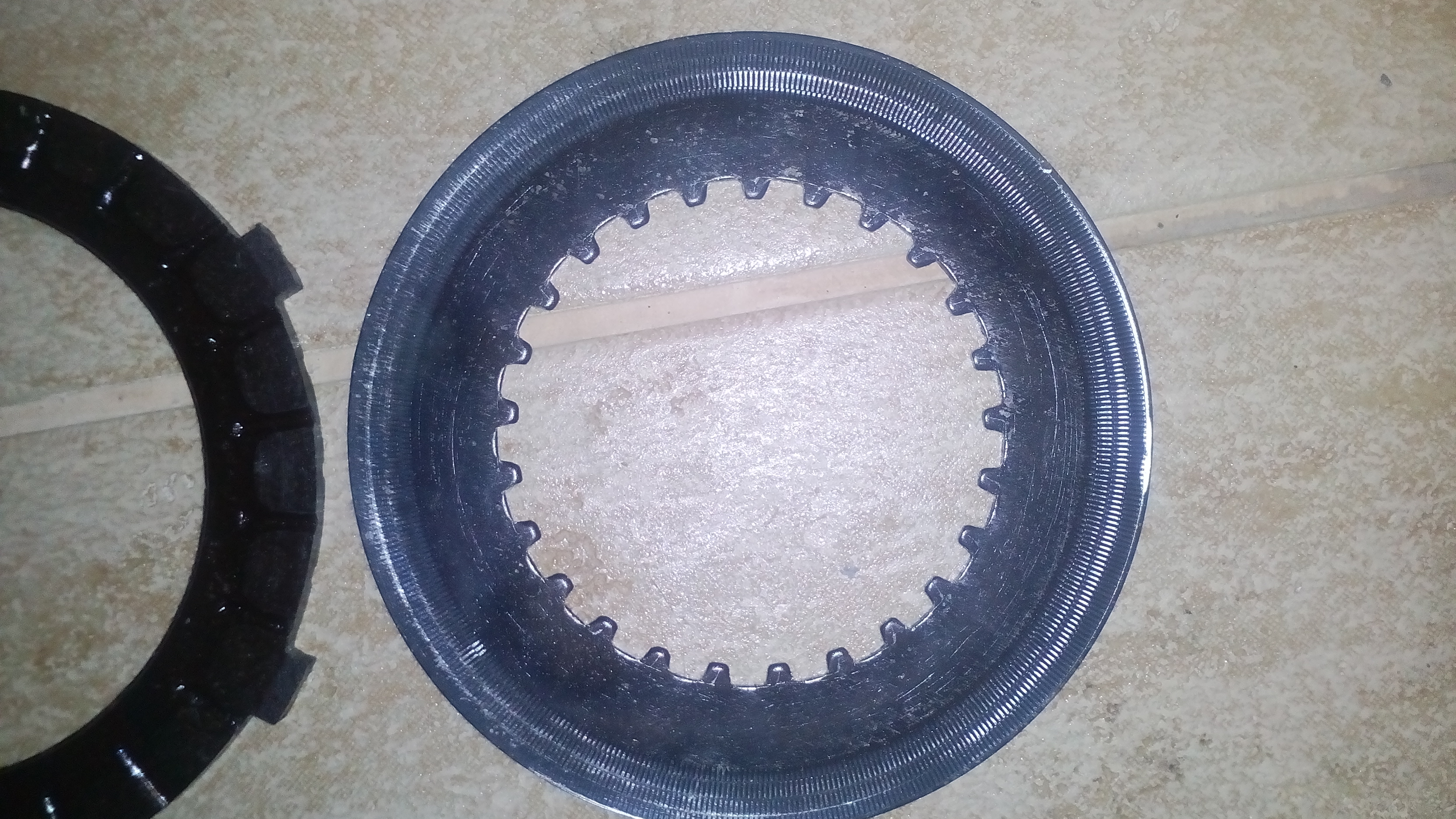 Ad unašeč: Buď pilník nebo nový, ale s tím, že brzy dopadne podobně. Ideálně původní DDR - z bazaru, nebo nástrojárna a ocel. Kovové lamely taky na unašeči musí chodit hladce. Přítlačák se zvedne asi o 1,5 mm a mezi lamelama je cca 0,1 mm mezera. Ta rozhoduje o tom, jestli spojka bude nebo nebude vypínat a plynule zabírat.