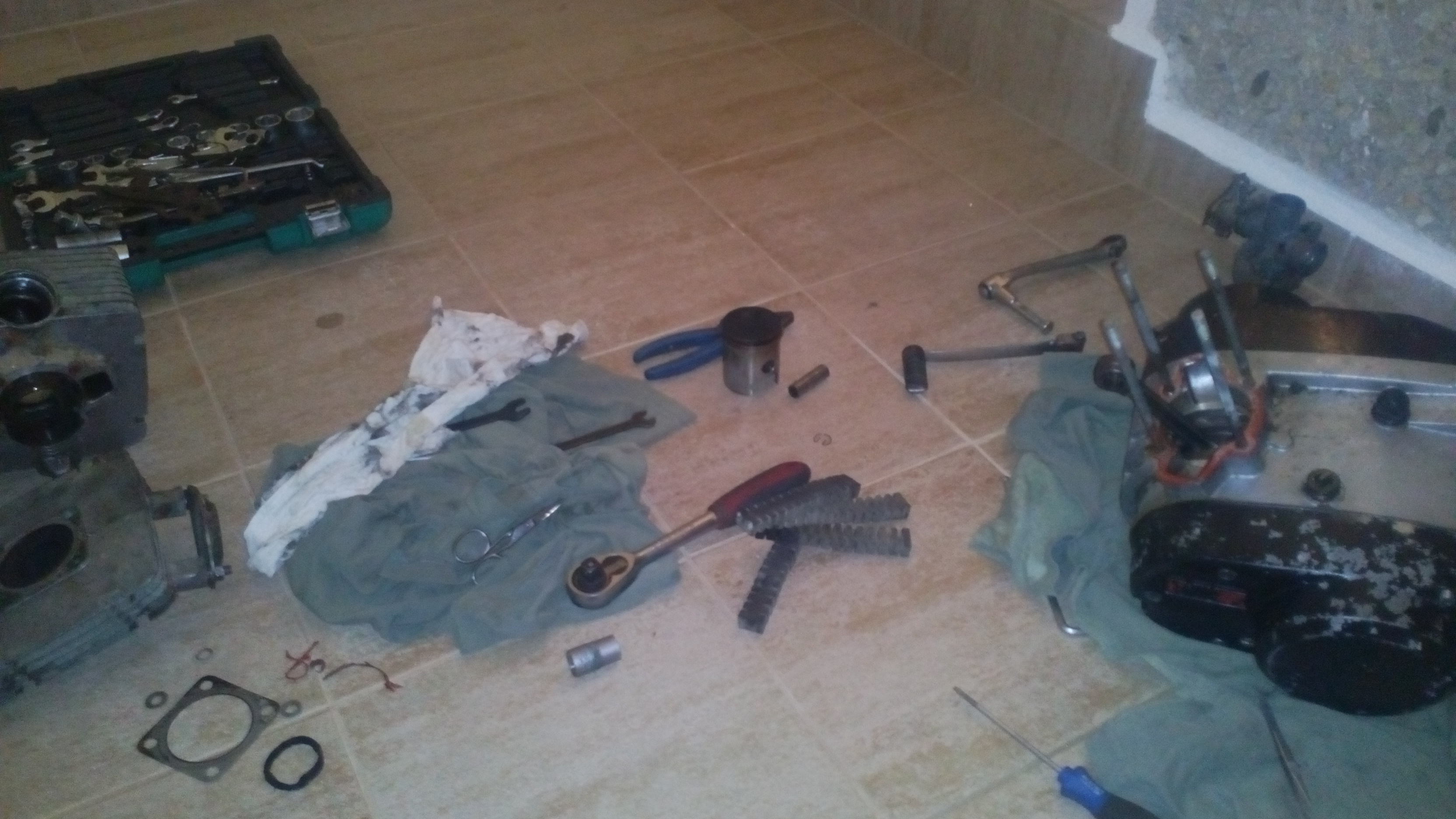Co vím od předchozího majitele tak byl dělán 1. Výbrus s novou pístní sadou potvrzeno papírem. No ale můj názor na člověka který to dělal nebyl určitě žádný znalec a vše co mohl to dojebl. Jednoduše každý šroub byl povolený