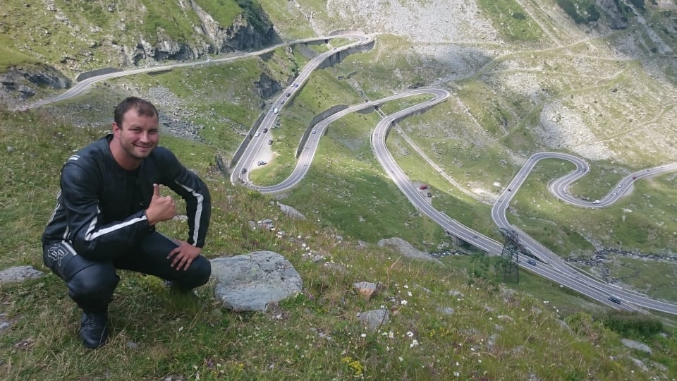 Transfagarasan a mladík v kožené kombinéze pro upoutání pozornosti B)